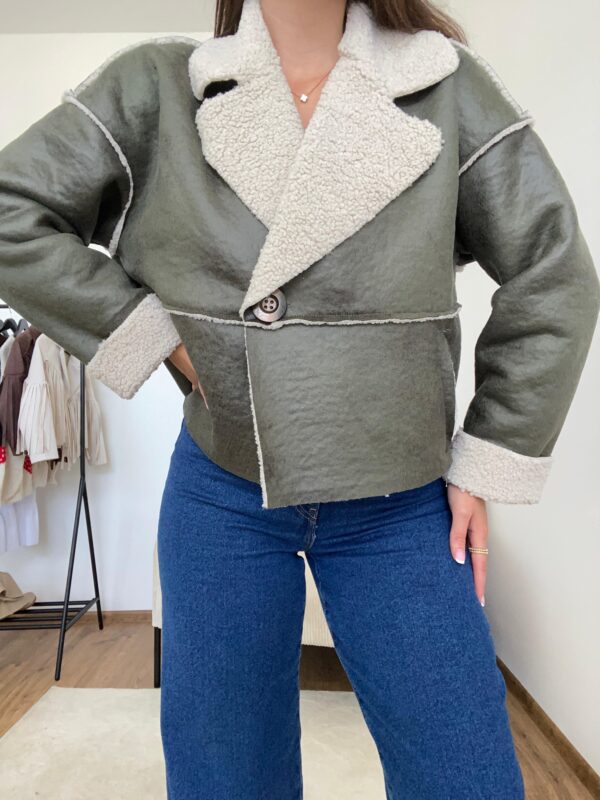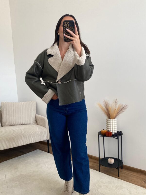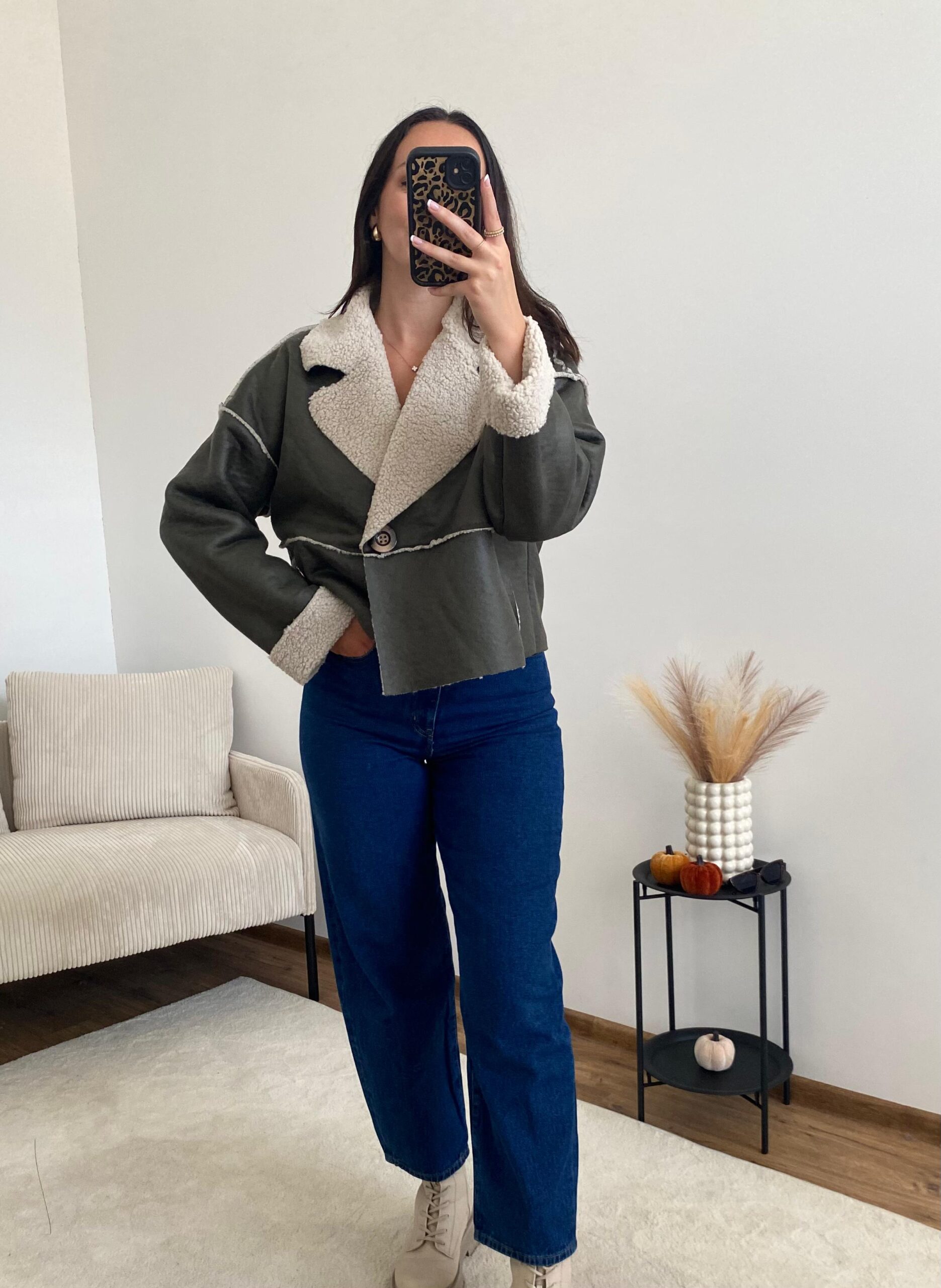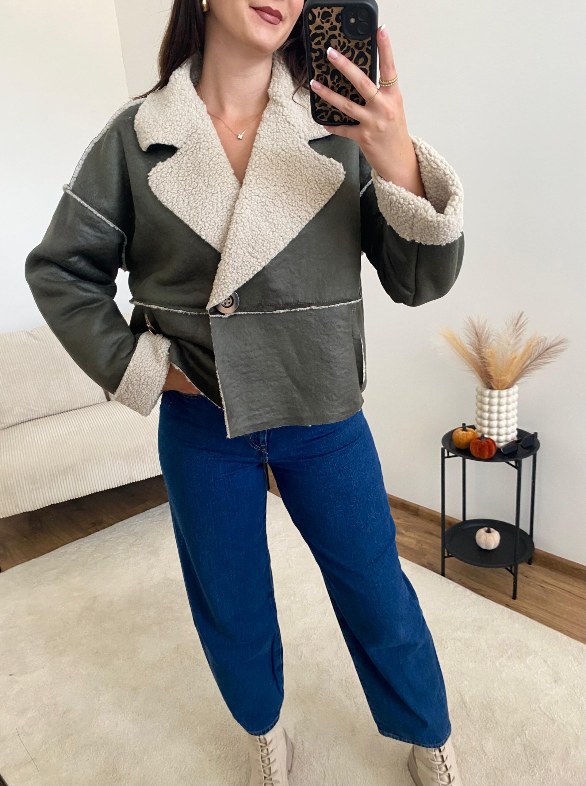 Tento štýlový, krátky kabátik s jemnou podšívkou typu „ovečka“, príjemne zahreje a zároveň zvýrazní jedinečný look. Elegantné zapínanie na jeden gombík dodáva kabátu čistý, minimalistický vzhľad, zatiaľ čo ozdobné (napodobené) vrecká dotvárajú jeho moderný dizajn. Nádherný a zaujímavý kúsok do každého šatníka.